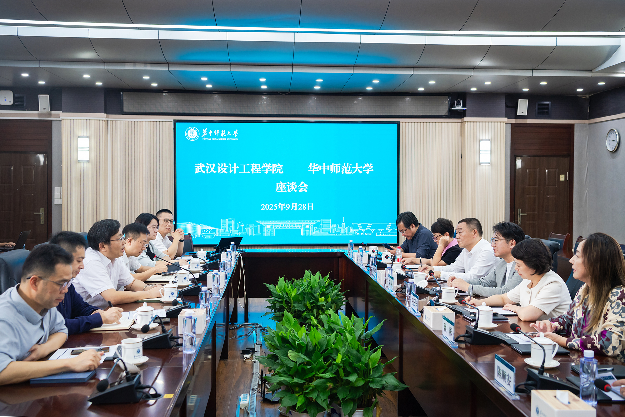 本网讯 9月28日下午,我校董事长程凡、党委书记王长华、校长龚少平率领访问团队,前往华中师范大学开展访问交流活动。华中师范大学党委书记夏立新、校长彭双阶会见了程凡一行,副校长刘宏达及该校相关职能部门负责人出席交流座谈会,双方围绕党建结对、“十五五” 、教育事业发展规划编制、教育数字化建设等核心议题,展开深入研讨与交流,为两校未来合作奠定基础。